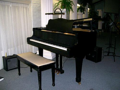 教室紹介 XX(メーカー名)のグランドピアノ、XX(機種名)。数々の生徒さまとの思い出がつまった、大事なピアノです。 調律は半年に一度おこなっており、状態は良好。弾きこんだピアノの音をお楽しみください。